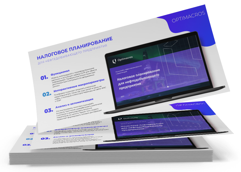 Демостенд «Налоговое планирование для нефтедобывающего предприятия» предназначен для демонстрации возможностей корректного расчета и планирования всех налогов на предприятиях нефтедобывающей отрасли, в частности налогов на добычу полезных ископаемых и формированию деклараций для отправки в налоговые органы.