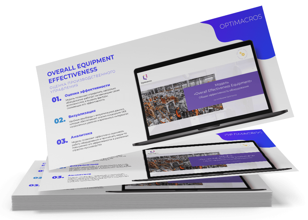 Показатель ОЕЕ позволяет определить, работает ли оборудование на максимуме своих возможностей, и если нет, то на что нужно обратить внимание, чтобы повысить эффективность. Этот показатель можно рассчитывать и сравнивать на различных уровнях по предприятию (для одного или группы станков, цеха, для всего предприятия в целом), а также на различном временном интервале (за день, месяц или год). Это реализовано в модели Overall Equipment Effectiveness на платформе Optimacros с удобной визуализацией для предприятия по металлообработке.